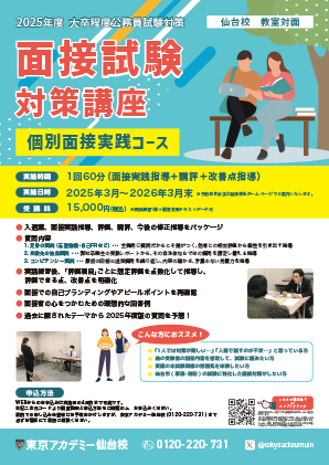 「面接試験対策だけを実践的に行いたい!」そんなご要望にお応えし、面接試験対策講座を開講!