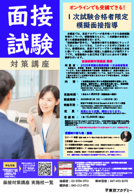 (面接対策講座をお申込みの場合、必ずお申込前に各校舎にお電話の上、日時と実施方法をご確認ください)