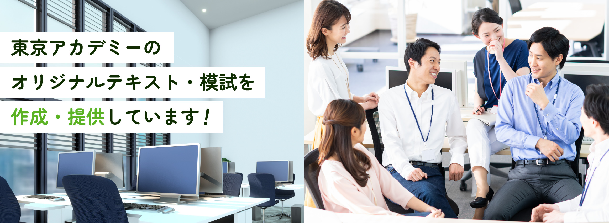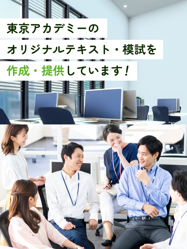 当社は、公務員、教員、医療・福祉系国家試験の受験対策専門予備校である東京アカデミーの関連会社です。東京アカデミーで使用する教材類や模擬試験の作製、模擬試験のデータ処理、東京アカデミー通信講座の運営、全国の各試験情報等の収集・加工・管理・配信などの業務を行っています。